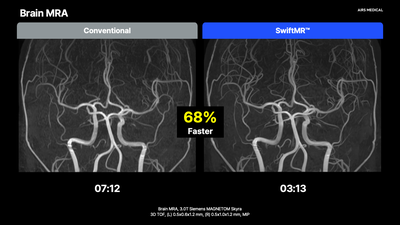 In cases where an OEM DL solution is already installed, SwiftMR works in conjunction to deliver additional scan time reduction. At an imaging center with a GE 3T scanner using AIR Recon DL, SwiftMR further reduced already-accelerated routine brain scans from 15 to 9 minutes.