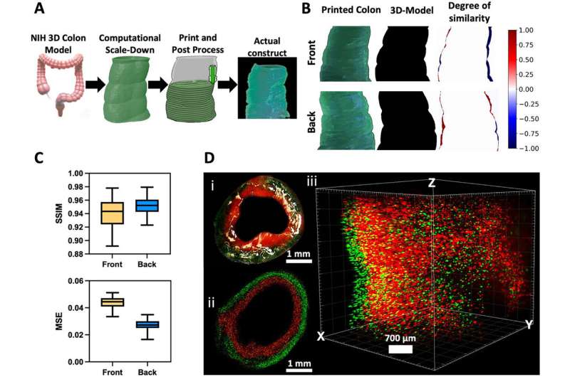 In a paper published recently in the journal Advanced Science, researchers in UC Irvine’s Samueli School of Engineering outline their creation of an approximately 5-by-10-millimeter replica that incorporates essential structural features of a colon, including liminal curvature, multilayered cellular organization and the spontaneous formation of cryptlike indentations.