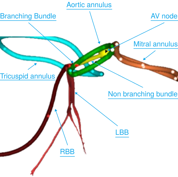 The system is intended for the preplanning and guidance of medical interventions in areas known to contain or be adjacent to the cardiac conduction system. These include percutaneous or surgical procedures such as transcatheter aortic valve replacement (TAVR), as well as procedures in which physicians seek to deliver therapy to the patient’s cardiac conduction system or to a targeted location within it, including conduction system pacing (CSP).