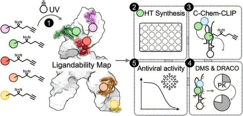 Writing in the Journal of the American Chemical Society, the scientists explained that they began by seeking “druggable pockets” in the stable structures of viral genetic material. Like keyholes, these pockets offer promising spaces to intervene with a precise medication. The team then used systematic chemistry, computational, and robotic drug discovery methods to find and perfect compounds able to function like the keys.