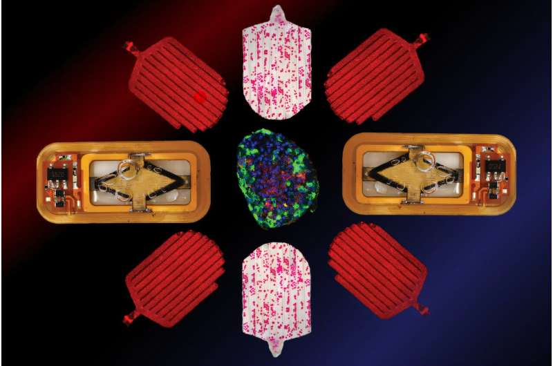Most diabetes patients must carefully monitor their blood sugar levels and inject insulin multiple times per day, to help keep their blood sugar from getting too high. As a possible alternative to those injections, MIT researchers are developing an implantable device that contains insulin-producing cells. The device encapsulates the cells, protecting them from immune rejection, and it also carries an onboard oxygen generator to keep the cells healthy.