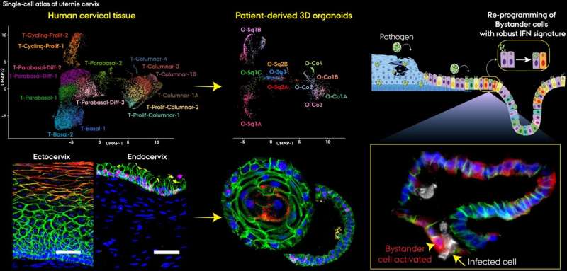 Using patient-derived 3D mini-organs, so-called organoids, and single-cell mapping technologies, the team has, for the first time, shown how distinct epithelial cell types in the cervix detect, respond to, and help neutralize infections.