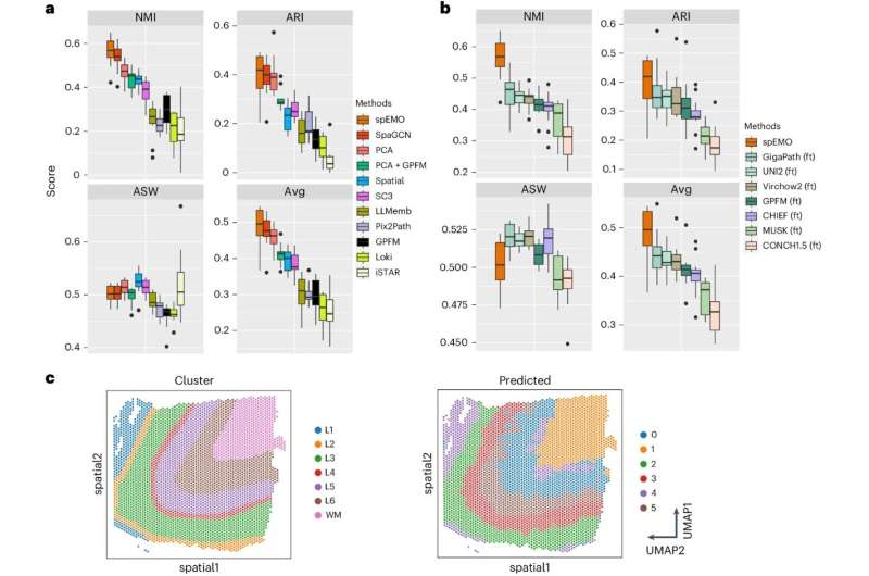 In the study, researchers introduce a new computer system called spEMO, short for “spatial multi-modal embeddings.” The system uses artificial intelligence to combine images of tissue slides with information about gene and protein activity, allowing scientists to analyze biological data in a more complete and meaningful way.
