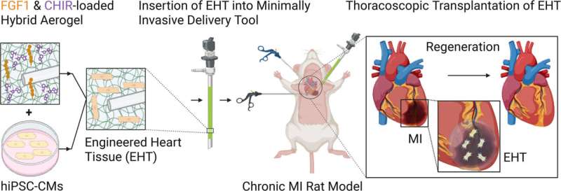 The new approach uses lab-grown heart tissue made from reprogrammed adult stem cells, delivered through a tiny incision rather than a surgically opened chest cavity. In preclinical testing, the stem cell patch restored heart function and improved healing.