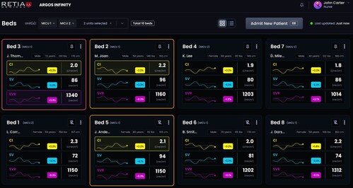 Argos Infinity builds on Retia’s clinically validated Multi-Beat Analysis® (MBA®) algorithm and analyzes real-time physiologic data streams from existing monitoring and tele-ICU systems. By transforming routine signals into actionable cardiovascular insight, Argos Infinity supports earlier recognition of hemodynamic instability in operating rooms and intensive care units.