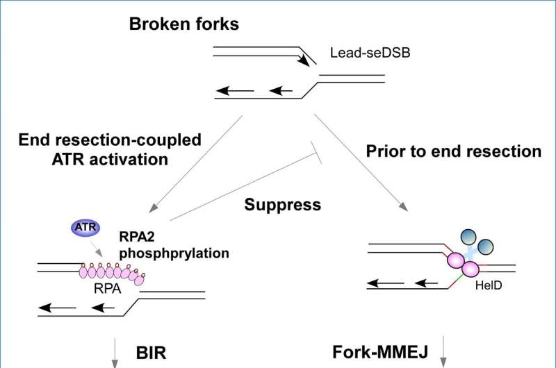 Every time a cell divides, it must make an exact copy of its entire genome, a process carried out by molecular machinery that unzips the DNA double helix and reads each strand to build a new one. The point where this unzipping and copying actively happens is called a replication fork. But when this replication machinery encounters damage, forks can stall or collapse, leaving behind dangerous one-ended DNA breaks that are particularly difficult to repair and, if left unresolved, can kill the cell. This is particularly true in cancer cells, where replication stress is constant.