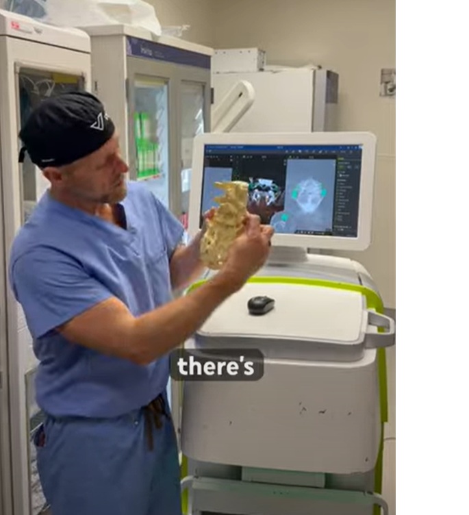 Traditionally, resection surgery for Bertolotti syndrome can require large incisions and significant tissue disruption to access the deeply positioned transitional bone. Dr. Good’s innovative approach replaces this extensive exposure with a precisely planned, robot-guided procedure that dramatically reduces surgical impact.